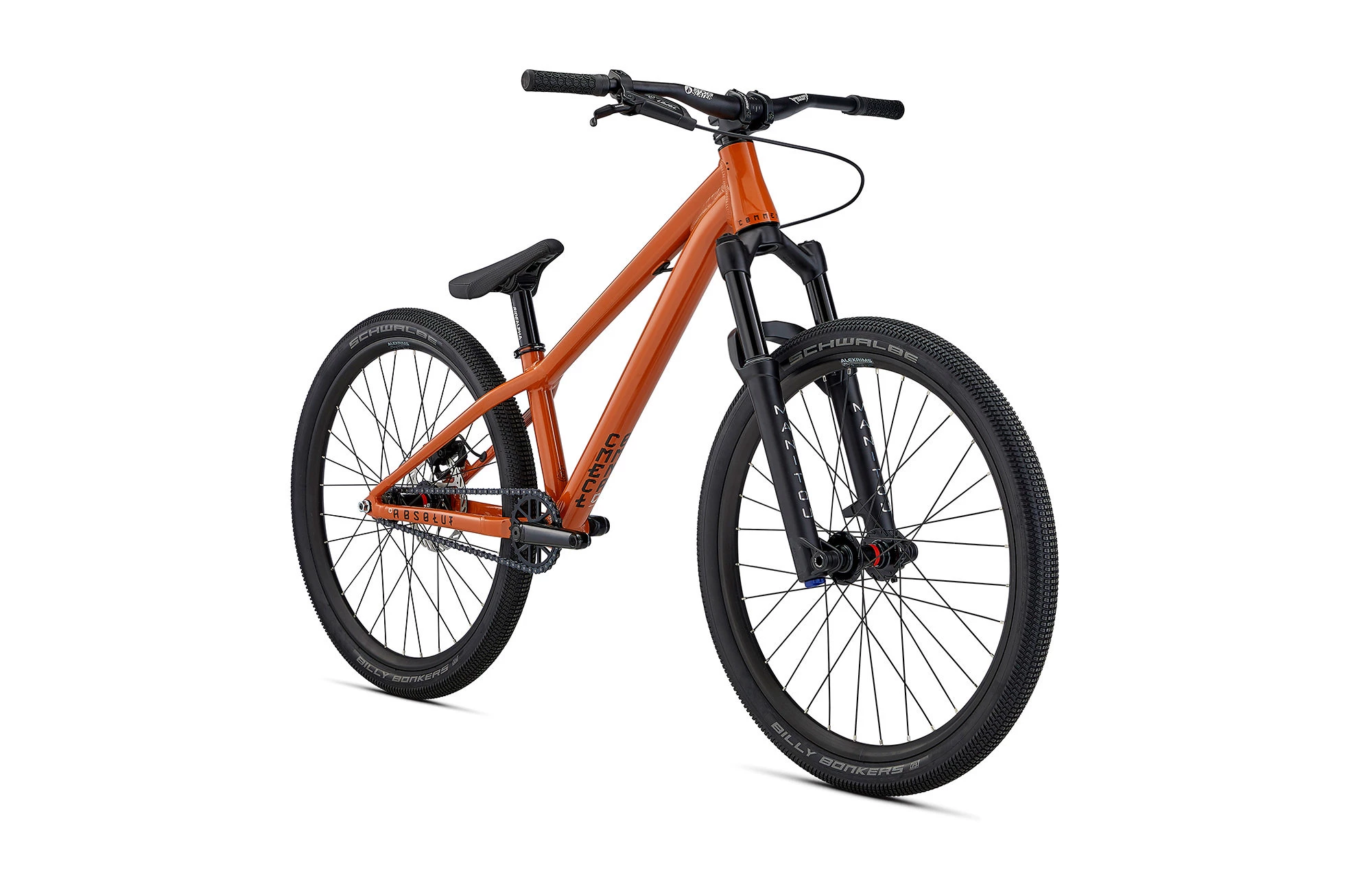 Avec sa peinture ‘Orange’ et ses composants noirs, l’ABSOLUT 24 a tout pour plaire ! Il est équipé d’une fourche MANITOU Circus Expert 24 », une référence dans son domaine pour sa fiabilité et son fonctionnement. Notamment grâce à un ressort pneumatique qui permet de la durcir. On retrouve également un pédalier 3 pièces type BMX avec des manivelles courtes de 140 mm, résistant aux chutes. Les jantes ALEXRIMS, équipées de nouveaux moyeux NOVATEC single speed, sont robustes et conçues pour la pratique du dirt. Les pneus SCHWALBE, parfaitement adaptés au programme de l’ABSOLUT, bénéficient d’un excellent rapport roulement/grip latéral. Enfin, on retrouve un cockpit spécialement adapté aux enfants avec un cintre SDG de 650 mm, une potence courte (40 mm) et des grips SDG spécifiques aux petites mains.