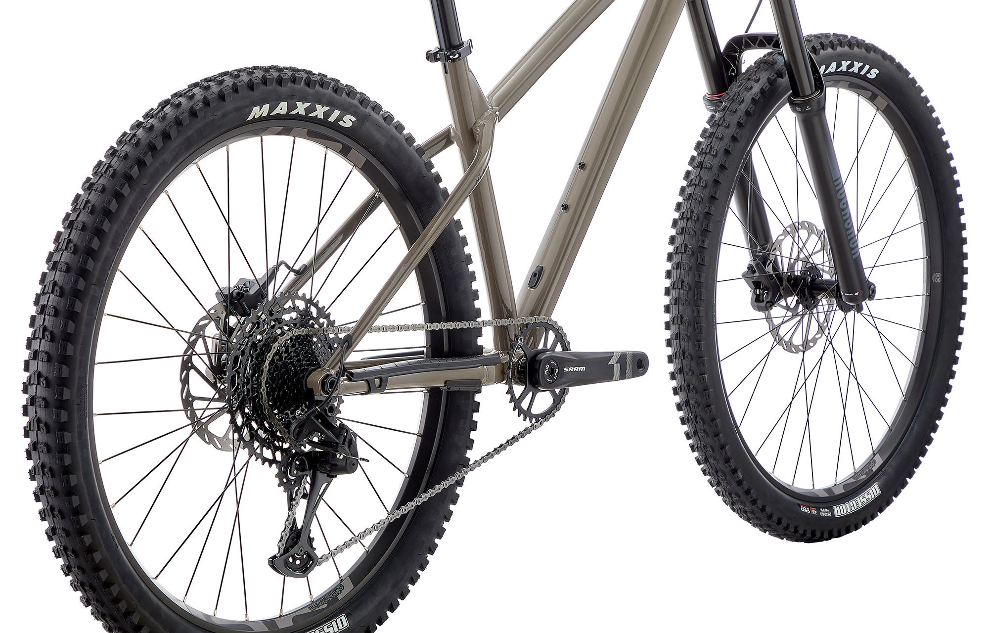 – Les pneus MAXXIS Dissector en 2.6 de section, quelle que soit la taille des roues, assurent confort et adhérence. Leur taille leur permet également de rouler à basse pression.