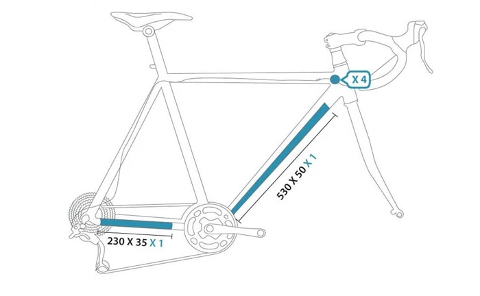 Protections antichocs et antirayures CLEARPROTECT pour le down tube et les bases.